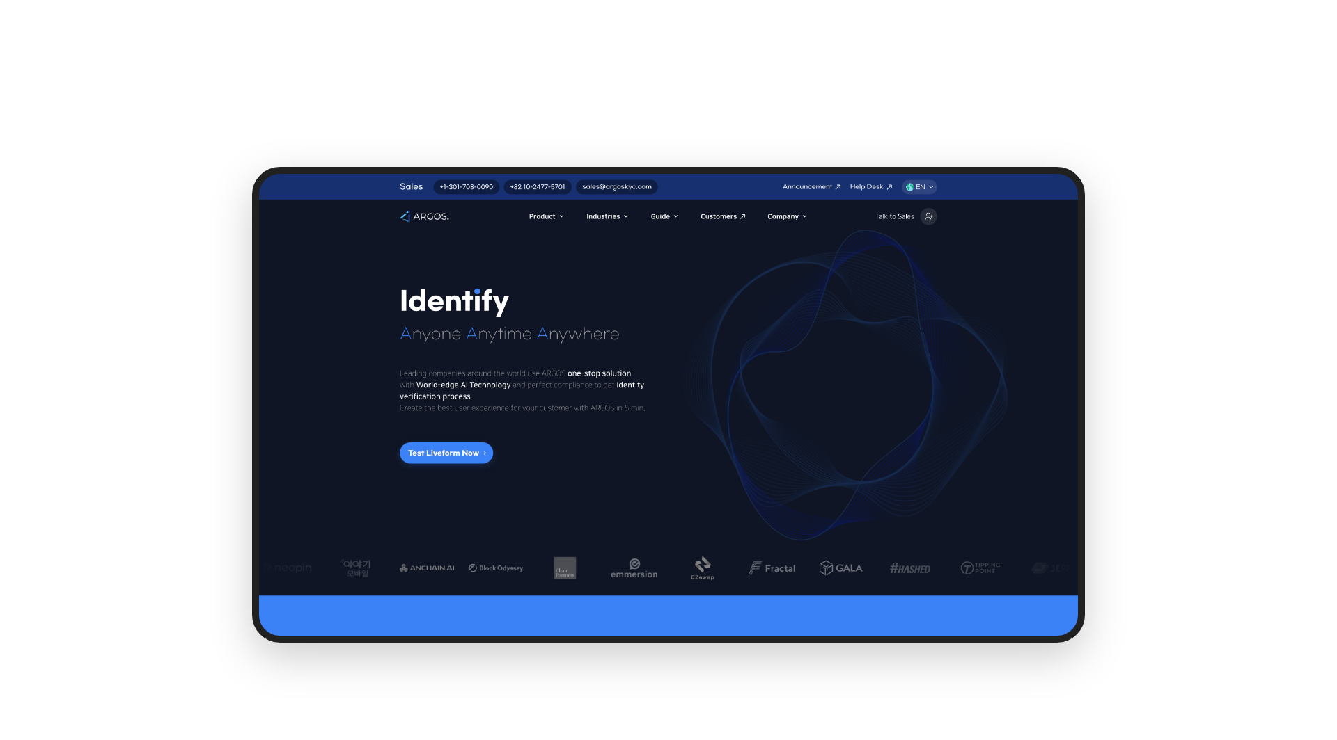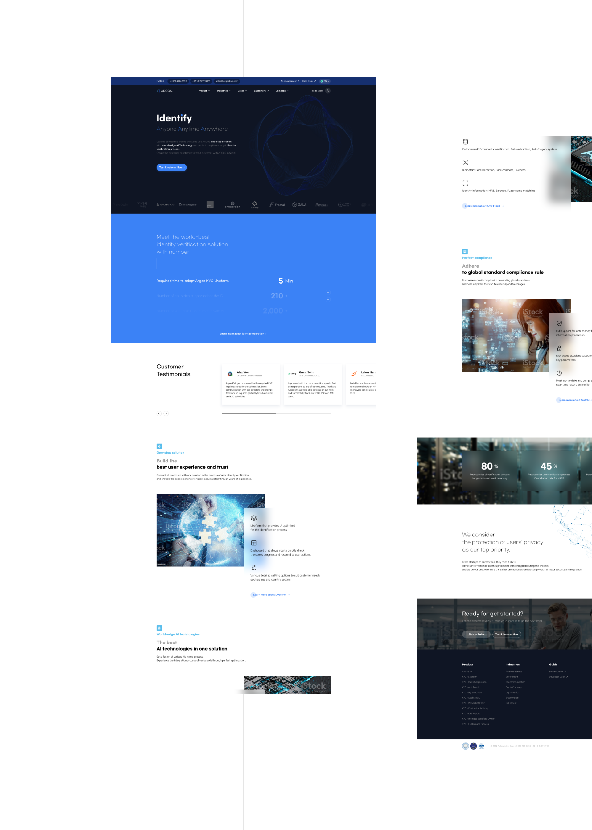 아르고스는 금융거래 서비스 및 비대면 본인인증이 필요한 업체에 비대면 본인인증과 자금 세탁 위험 분석 서비스를 제공합니다. 복스디자인에서 아르고스 랜딩 페이지를 디자인하고자 합니다. 스크롤에 따른 인터렉션으로 많은 정보를 자연스럽게 볼 수 있도록 하기 위해 UI를 구성하였습니다.