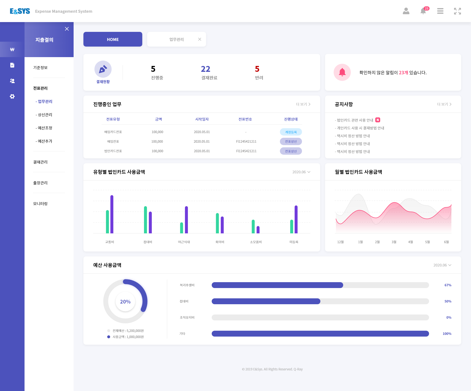 이앤시스의 프로덕트인 ERP 대시보드를 디자인하였습니다.