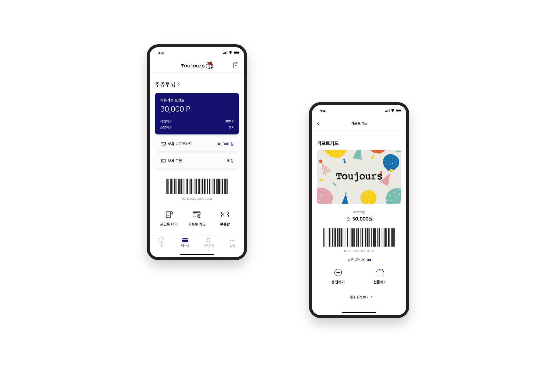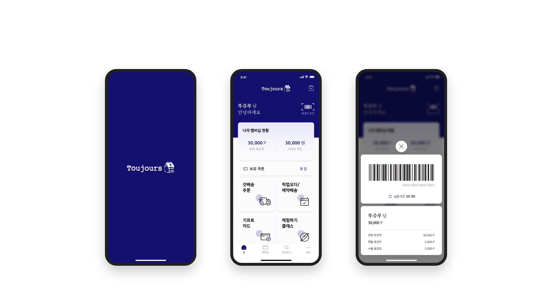 뚜쥬루 멤버십 앱을 런칭하기 위해 App 기획과 디자인을 하였습니다.