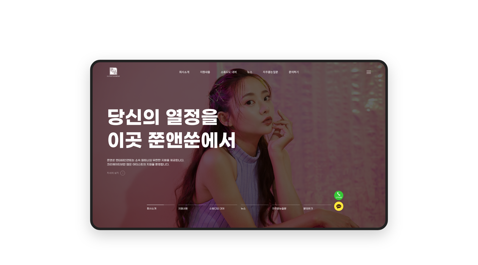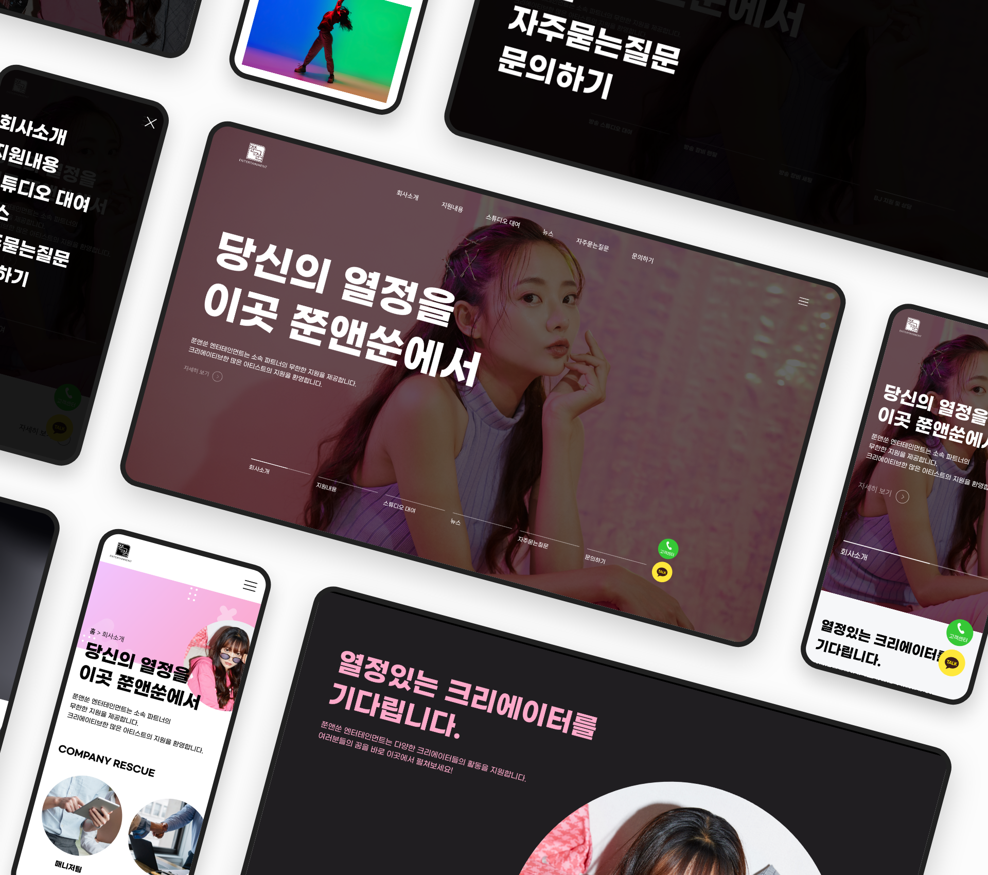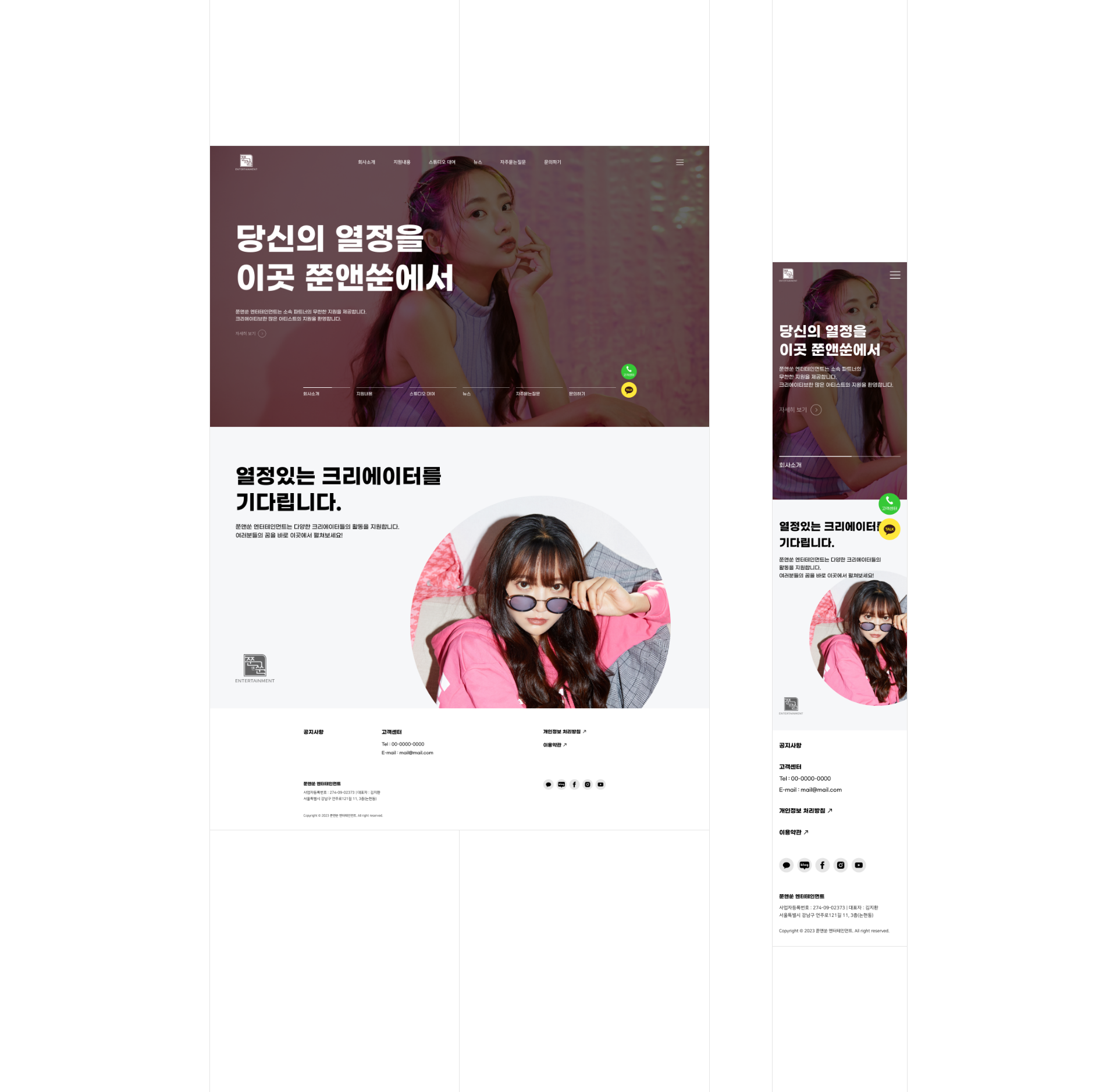 엔터테인먼트를 소개하는 자사 홈페이지를 기획, 디자인하였습니다.