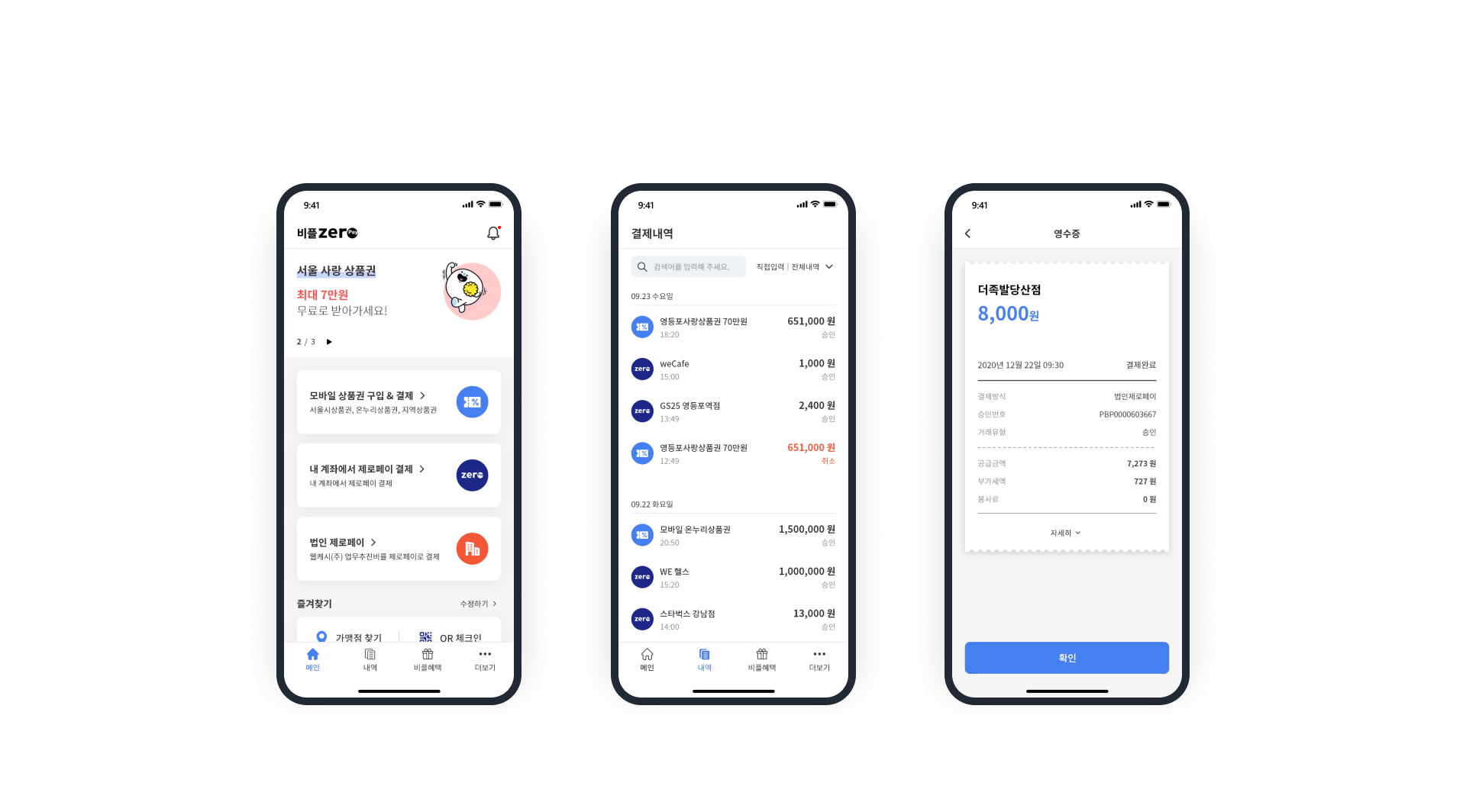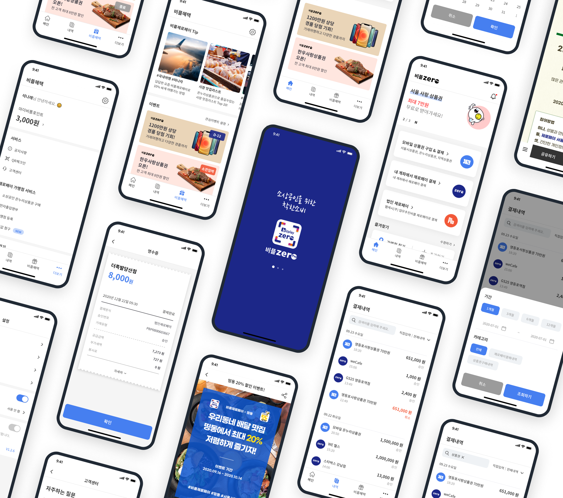 비플제로페이는 온누리 상품권, 서울사랑 상품권, 지역사랑 상품권을 할인된 금액으로 구매하고 QR/바코드 촬영 및 제시 방식으로 쉽고 간편하게 결제할 수 있는 시스템입니다. 오픈 한 지 1년이 되었고 100만 사용자를 보유하고 있는 시점에서 복스디자인에서 더 많은 사용자 확보와 새로운 기능 추가, UX/UI 사용성 개선을 위해 트렌디한 디자인으로 리뉴얼 하였습니다.